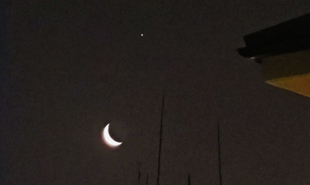 这是2026年1月15日在天津津南拍摄的心宿二(右上)伴月。(张晓川 摄)