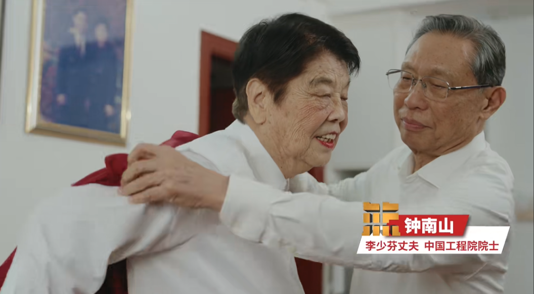 李少芬丈夫钟南山亲手为浑家穿上“名东谈主投降”,并说谈“很壅塞易啊,简略穿上这个一稔”“这么挺好意思瞻念的”“很出奇到你那么兴奋,那么欢悦,亦然咱们家的一个光荣。”