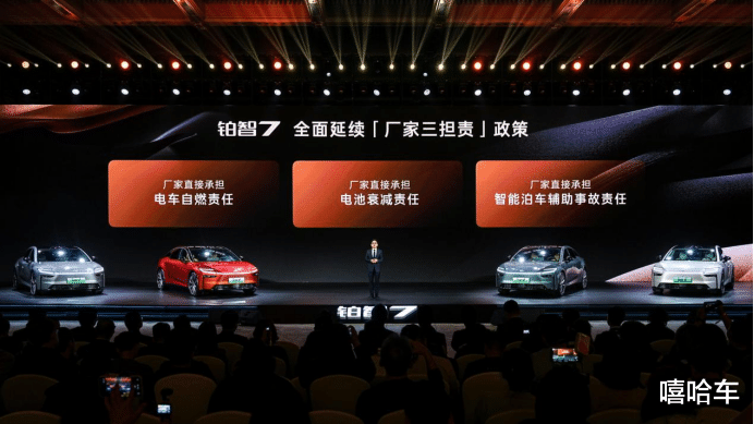 不啻于权利,铂智7还有两大甘心,为用户全程兜底:三电系统终生质保,澈底废除用户使用电车的永久烦燥;厂家三担责,即电车自燃、智能停车事故、电板衰减,均由厂家担责。