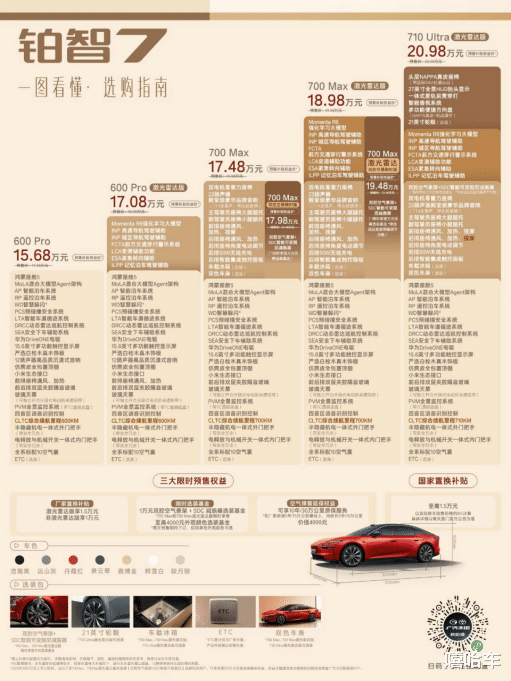 710 Ultra激光雷达版,最终预售权利价 20.98万元!20万级集王人鸿蒙座舱+激光雷达智驾+双腔空悬,信得过实现“一步到位”。