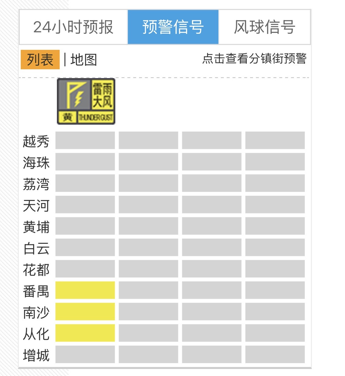 据@广州天气,雷雨已影响南沙南部和从化北部,目下番禺也要准备倒水了。截止12时,番禺、南沙、从化雷雨大风黄色预警成效中。