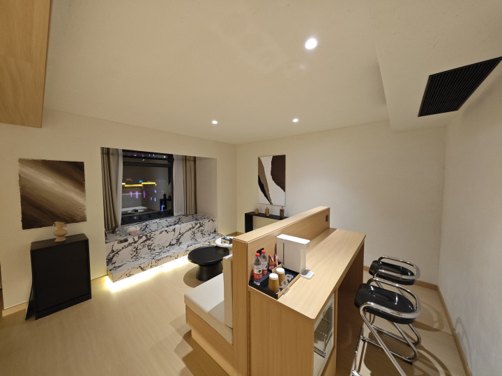刷开房门,一整面落地窗扑面而来——莫得覆盖,莫得杂质。