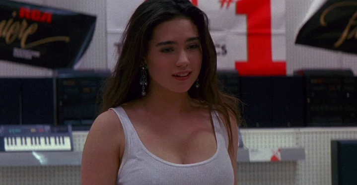 影片全程靠詹妮弗的魔力撑场——她衣盲从简衣饰,在市集里解放奔走、溜冰,灵动的眼光、无缺的体态,被导演用特写镜头狠狠捕捉。