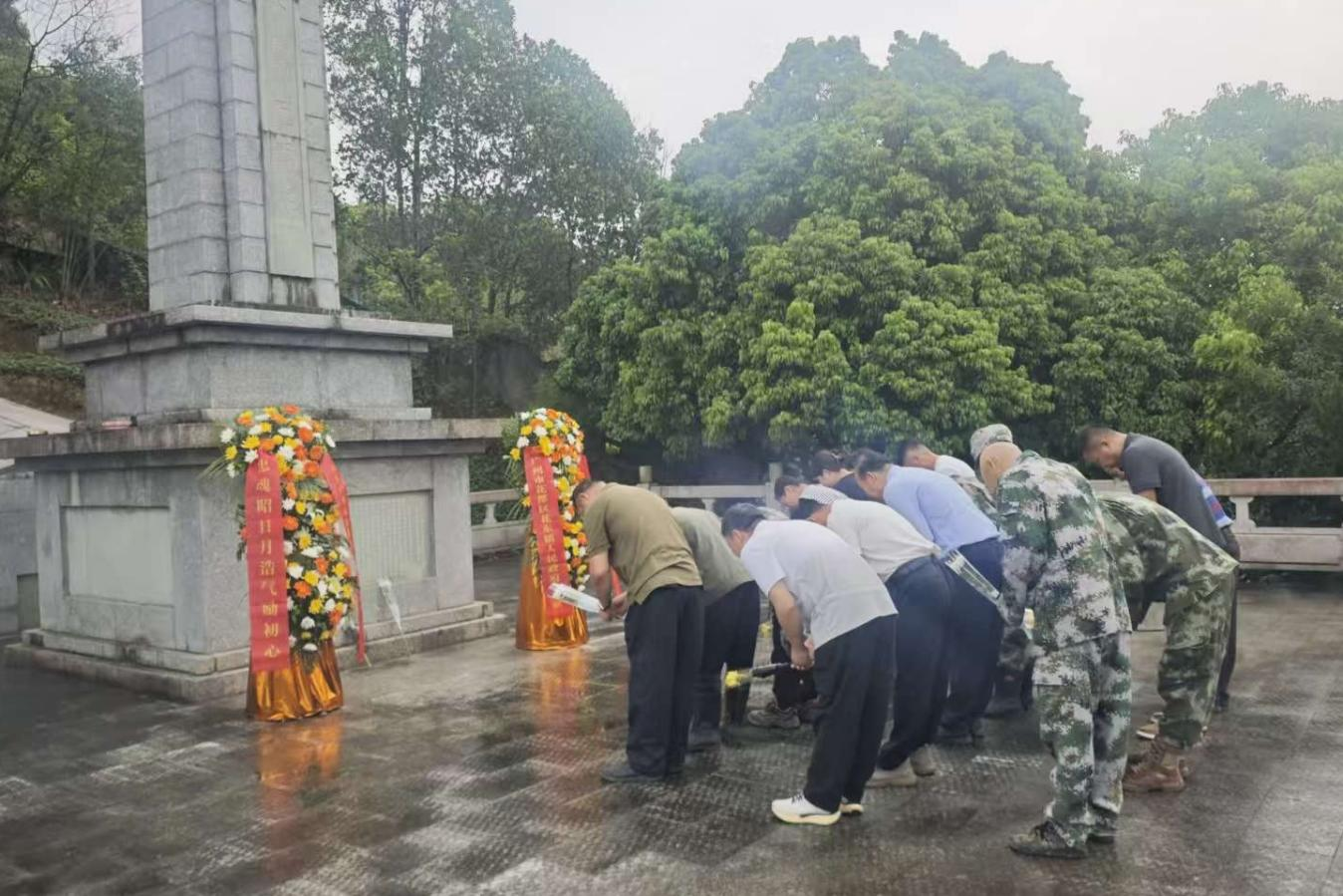 在狮前抗日糟跶义士陵寝分场,花东镇退役军东说念主作事站、红棉老兵志愿作事队与村民代表共同热爱义士墓碑。两处陵寝内,松柏凝翠,丰碑耸峙,巍巍景致间,开云体育app官方最新版尽寄花东东说念主民对先烈的绵绵追念念与高尚敬意。