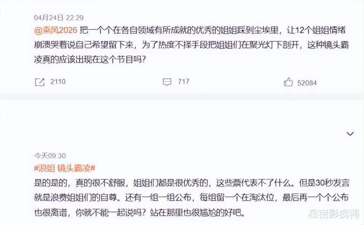 将她们的着急、酸心放大,再由镜头捕捉,果然看得东谈主很不闲逸,也被网友指出是一种“镜头霸凌”。